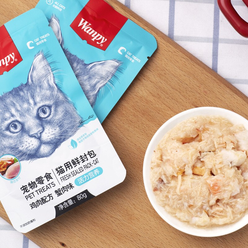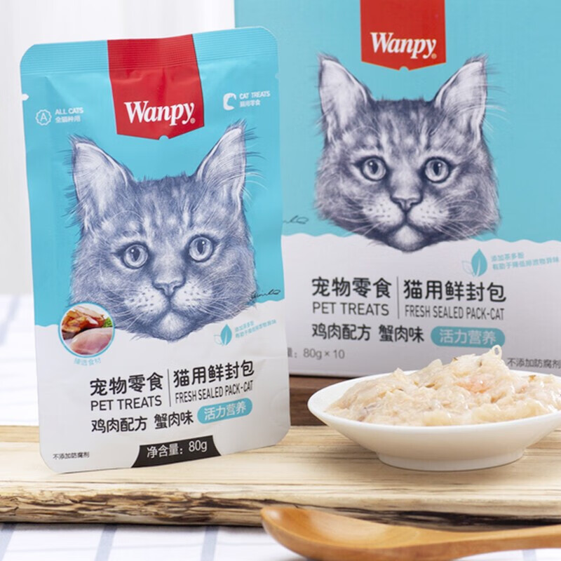 顽皮(wanpy)猫咪鲜封包活力营养宠物猫粮肉粒包猫湿粮猫罐头整盒 鸡肉 蟹肉80g*10