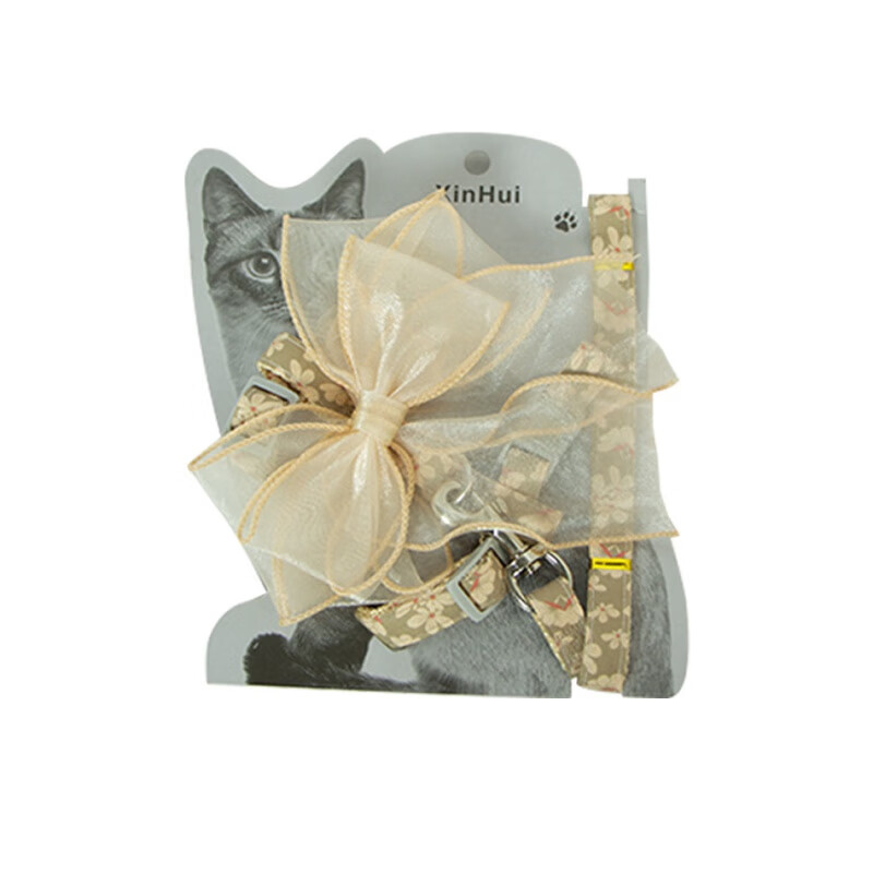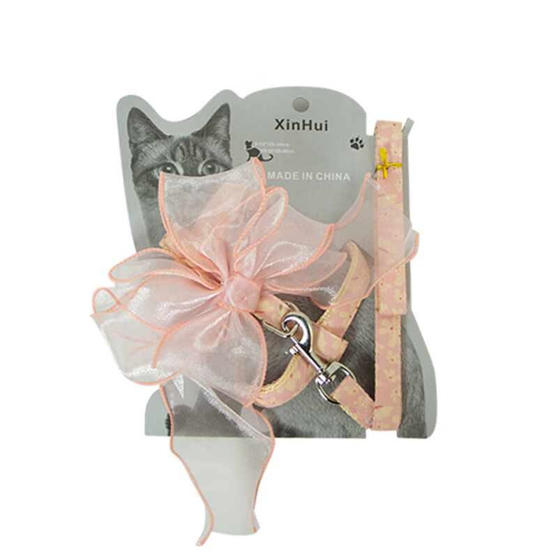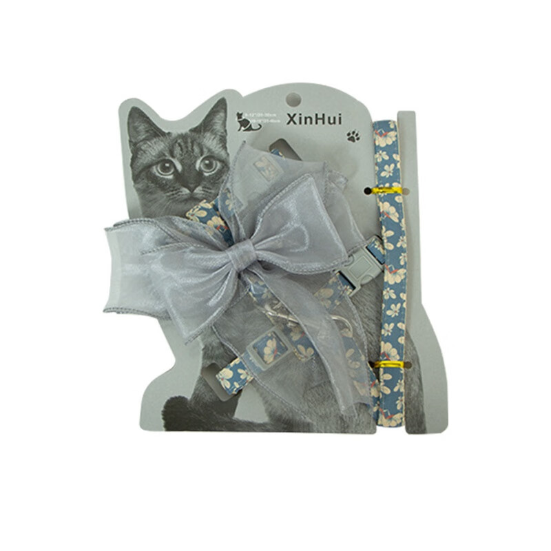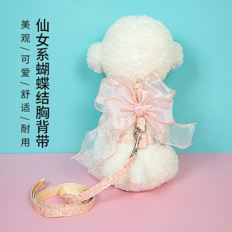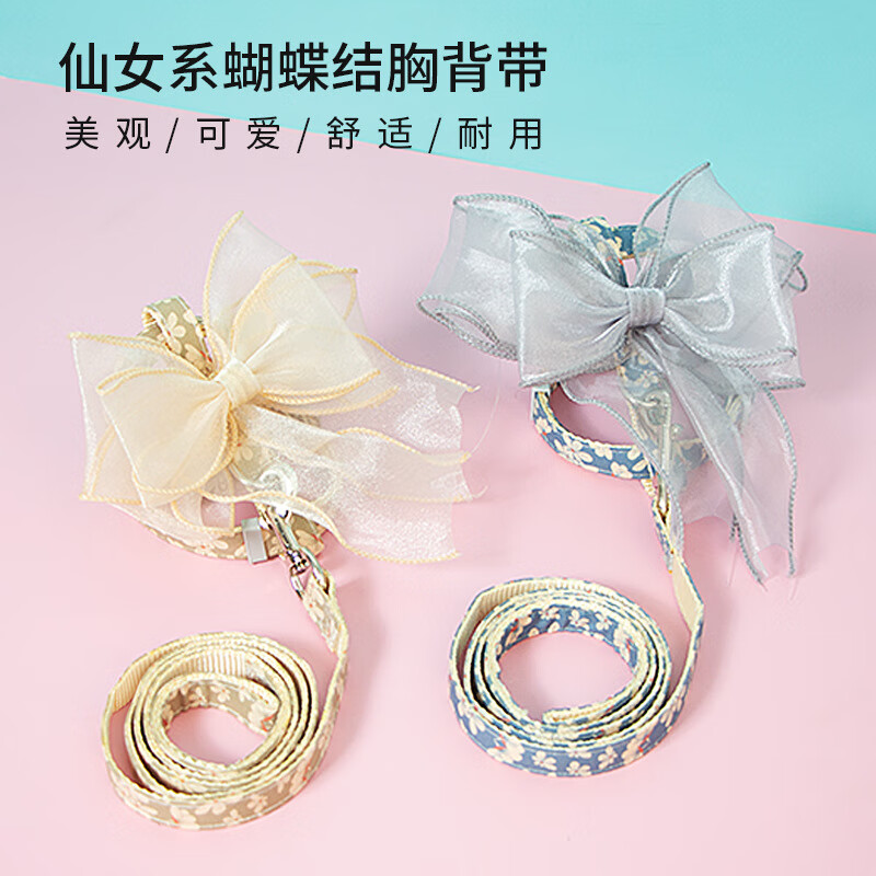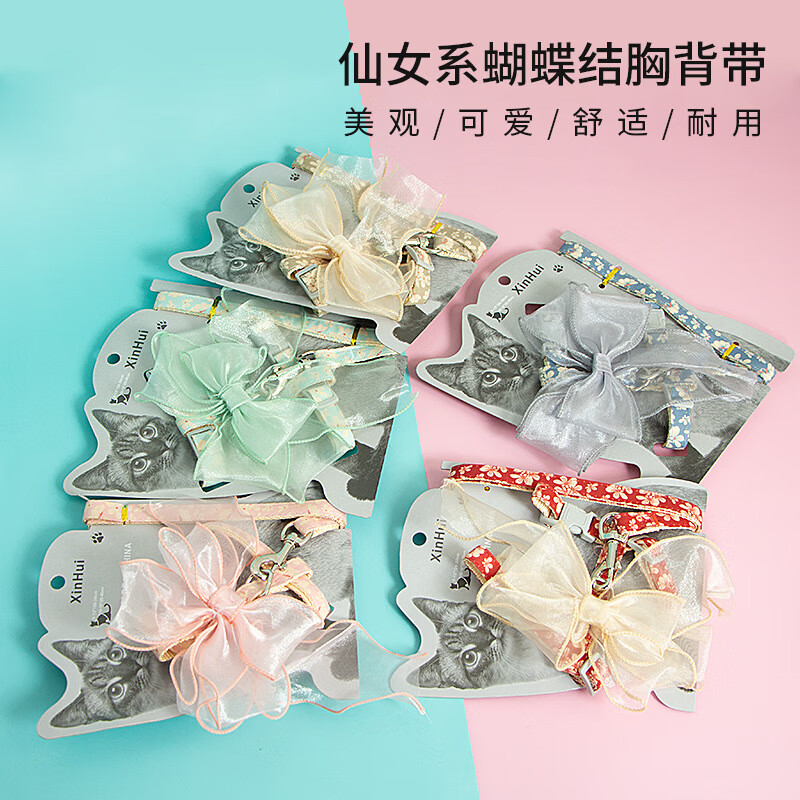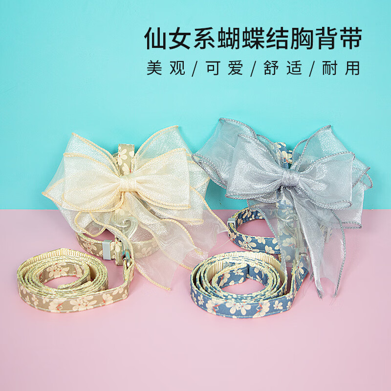 宠有为仙女蝴蝶结工字型猫咪胸背带牵引绳可爱舒适防走丢猫咪牵引带 蓝色 1.5cm(建议7-15斤)