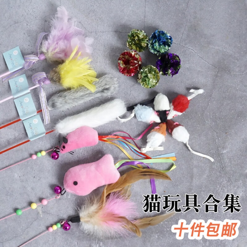 羽毛逗猫棒耐咬猫咪玩具套装仙女棒磨牙棒猫玩具斗猫棒猫咪定制 老鼠木质逗猫棒 规格