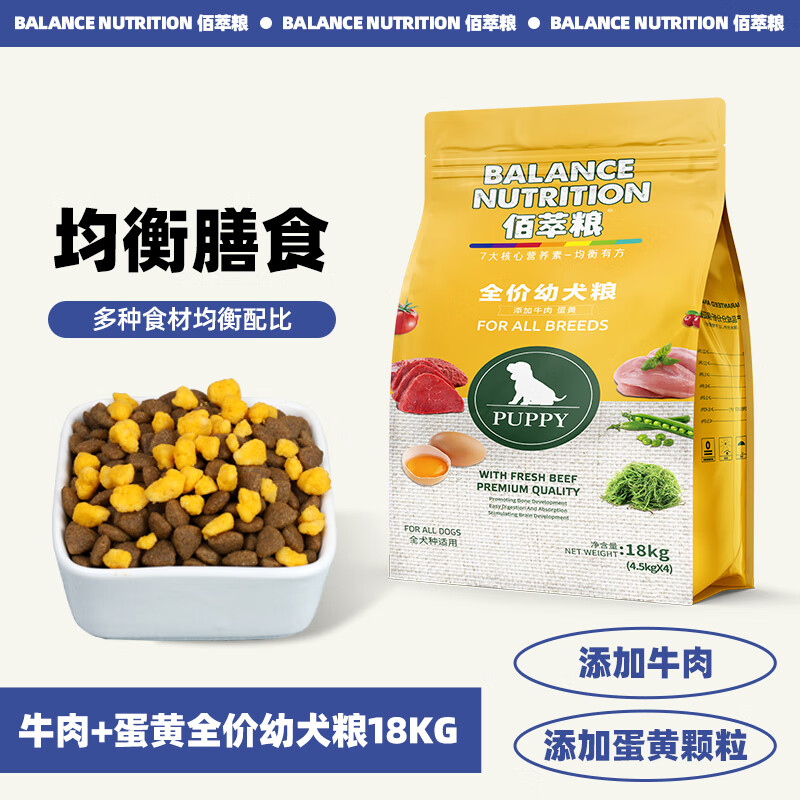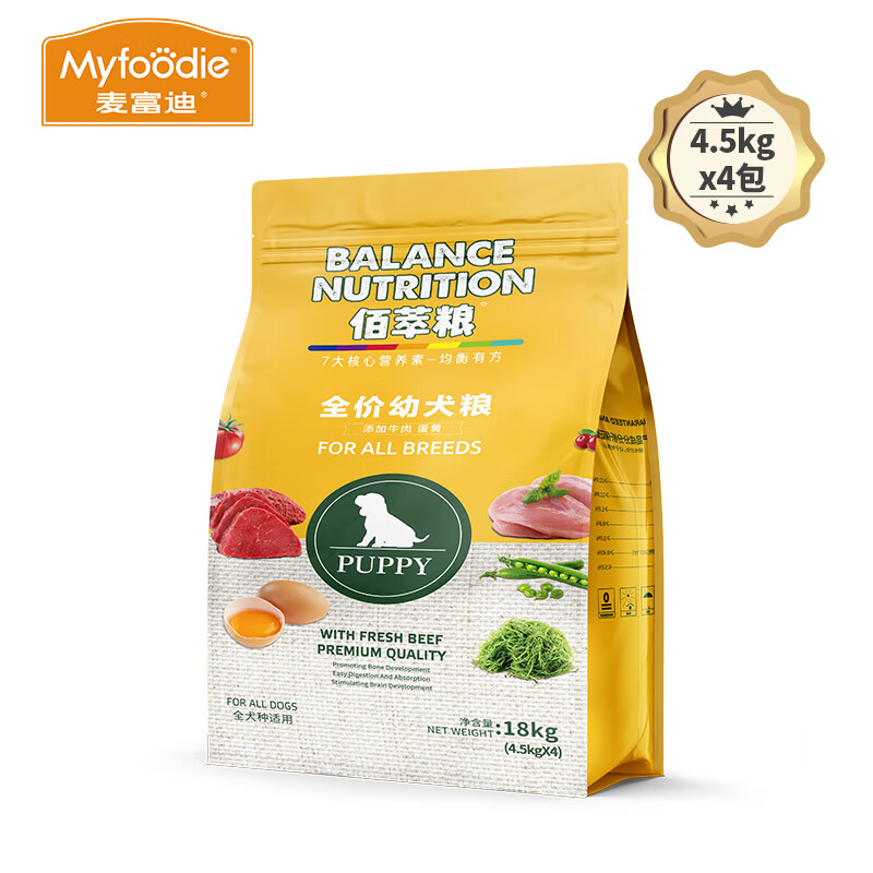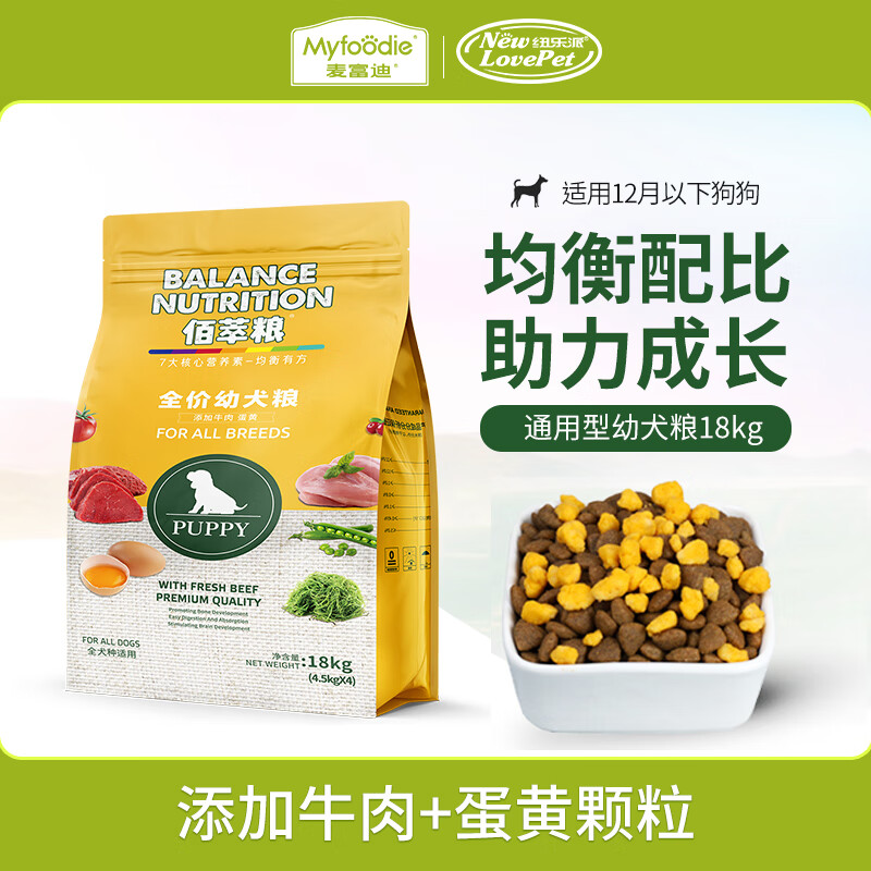 麦富迪佰萃狗粮 成犬幼犬全价粮金毛哈士奇萨摩耶全犬种通用型 牛肉 蛋黄幼犬粮18kg