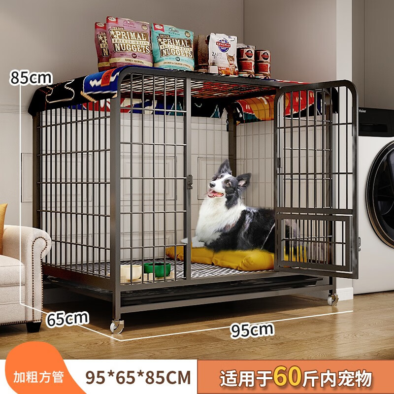 爱咪宠狗笼子小型犬中型犬折叠免安装狗笼带厕所分离柯基泰迪家用狗笼 【加粗方管95款】50斤内中型犬