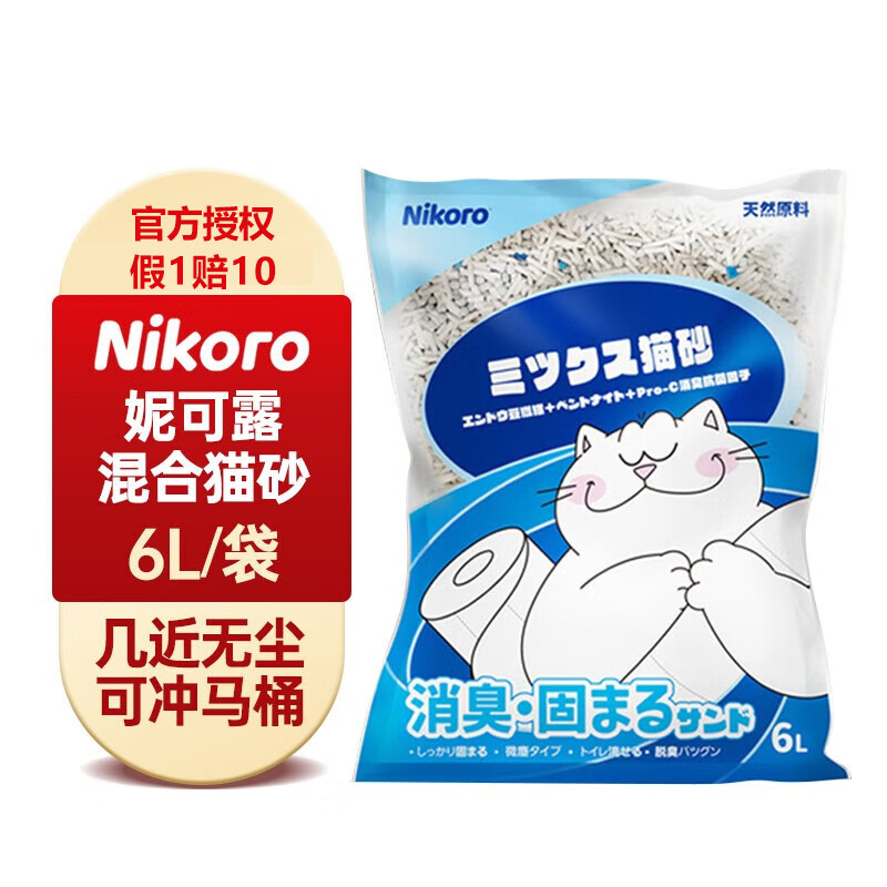 NIKORONIKORO妮可露宠物混合豆腐膨润土猫砂除臭无尘结团抑菌猫砂 【原味】混合猫砂6L*1袋