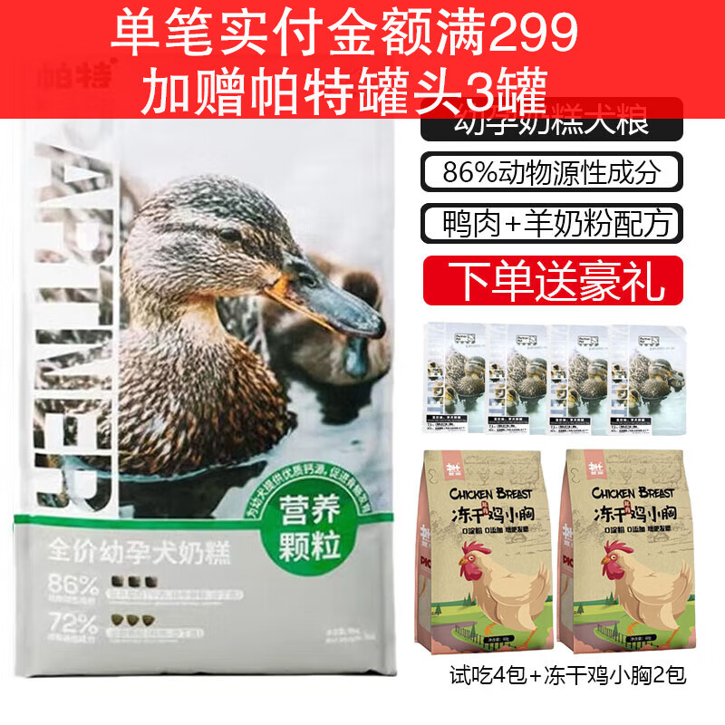 帕特生命系列幼孕犬奶糕粮冻干生骨肉火鸡肉成犬幼犬粮通用型天然狗粮 全价幼、孕犬奶糕8kg