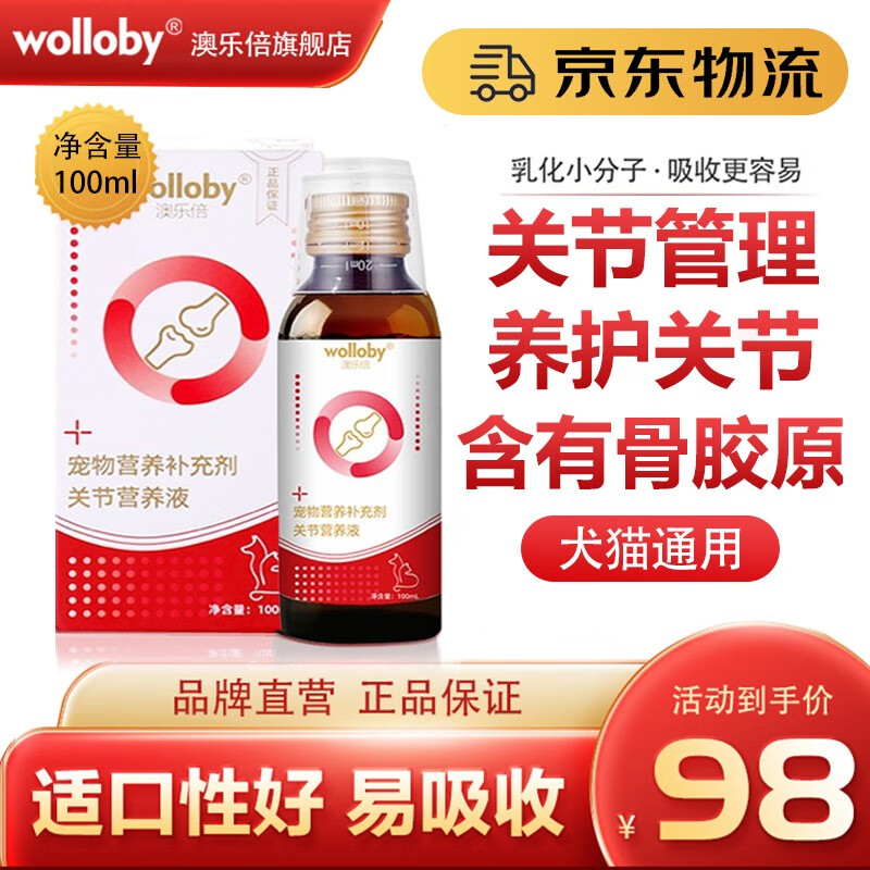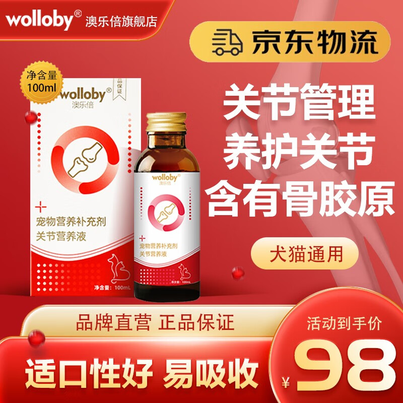 【旗舰店】澳乐倍(wolloby)猫咪狗狗关节营养液关节疼痛软骨磨损站立不稳行走异常宠物营养保健品 关节营养液100ml