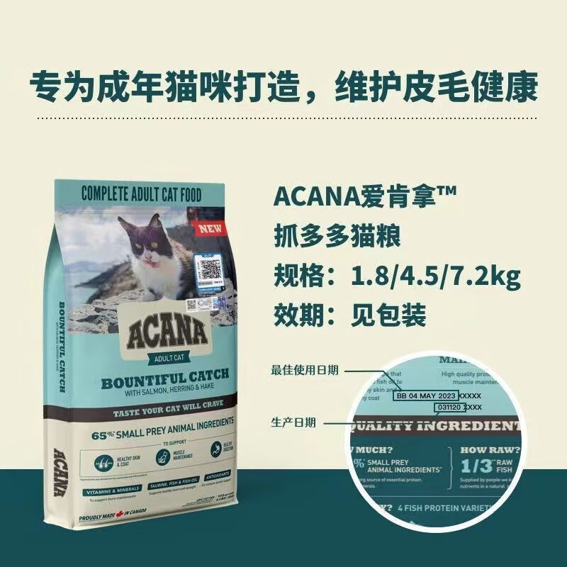 爱肯拿ACANA猫粮原装进口无谷天然猫粮幼猫成猫农场盛宴海洋盛宴猫粮 抓多多1.8kg