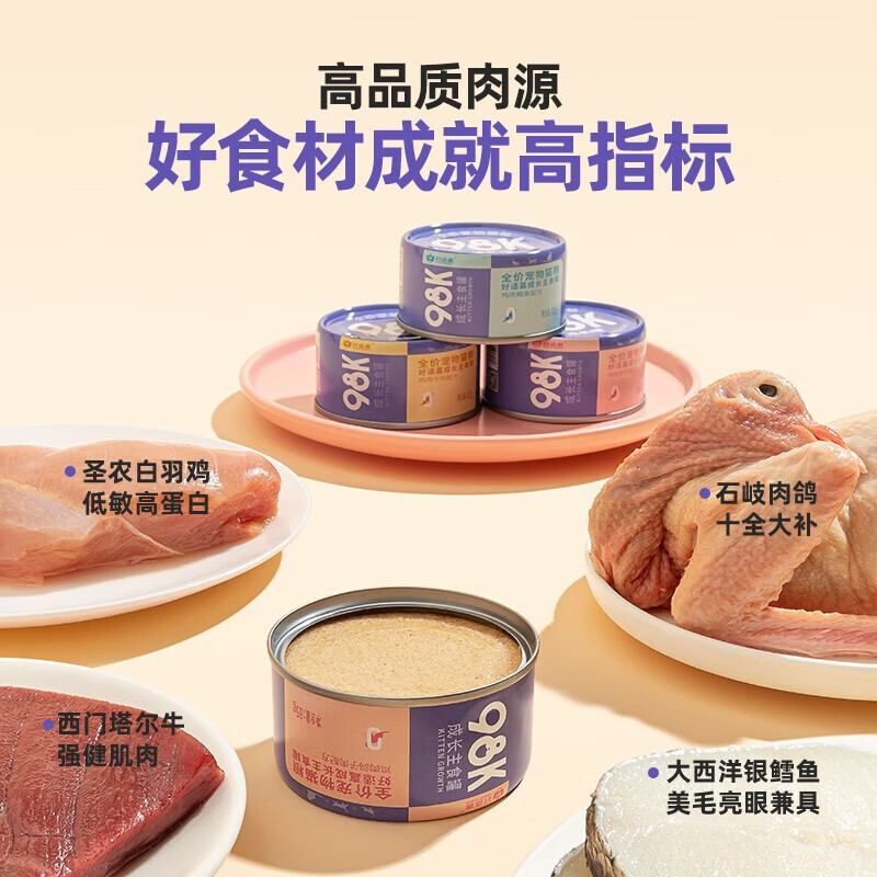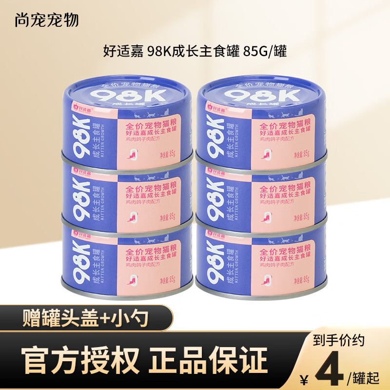 好适嘉猫罐头 98K猫主食罐头85g 猫咪成猫幼猫零食罐头湿粮全价无谷营养 【成长罐】鸡肉 鸽子肉 85g 6罐