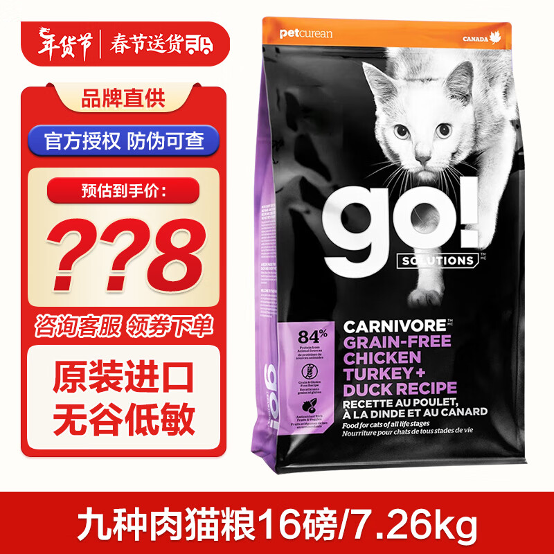 GO!SOLUTIONS原装进口go猫粮九种肉 无谷低敏高蛋白发腮成猫幼猫全价猫粮 九种肉16磅7.26kg-24.6