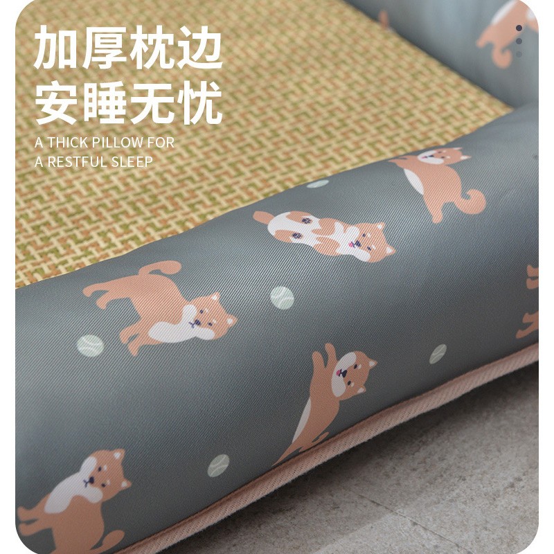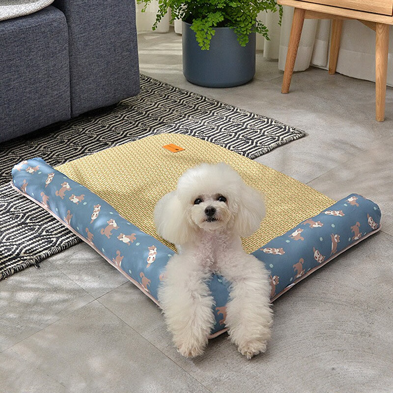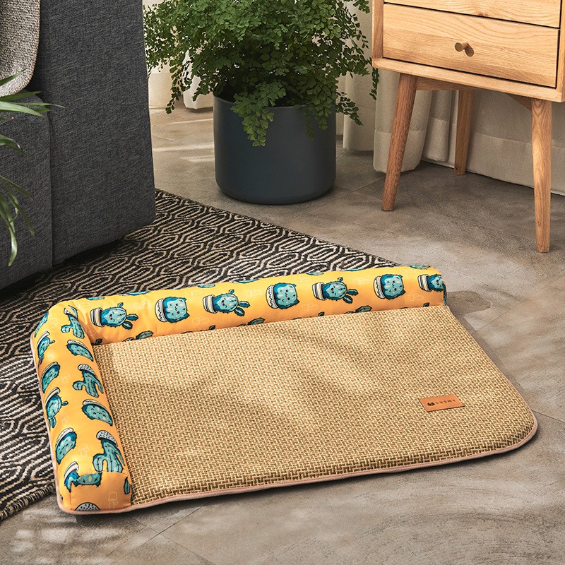 网红高级宠物狗窝猫窝夏季凉窝夏天凉席地垫子猫咪小型犬泰迪柯基 黄色仙人掌 XL-80×60CM-建议45斤内
