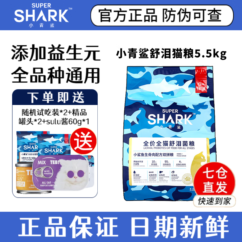 小青鲨猫粮【现货立发】冻干猫粮无谷物鱼肉营养英短布偶折耳猫猫粮 全价全猫舒泪菌粮5.5kg