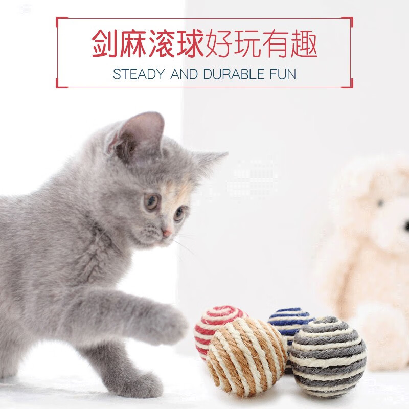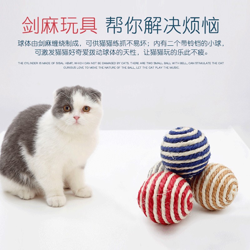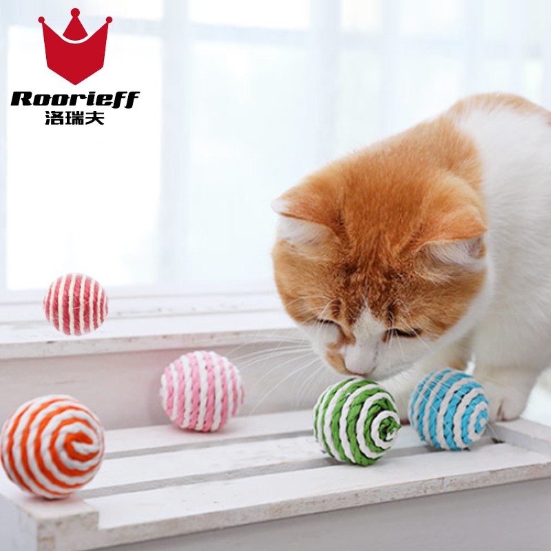 洛瑞夫 宠物猫咪玩具球逗猫激光笔神器幼猫猫玩具老鼠小猫玩具套装猫咪蹭痒器猫转盘逗猫玩具自嗨猫轨道 剑麻球三个装颜色随机