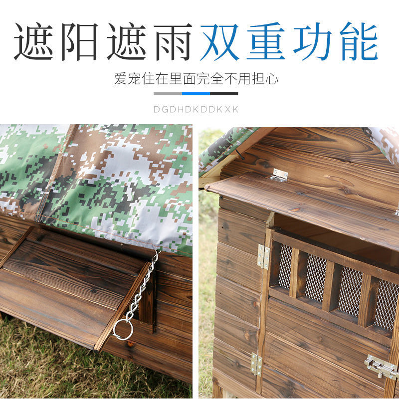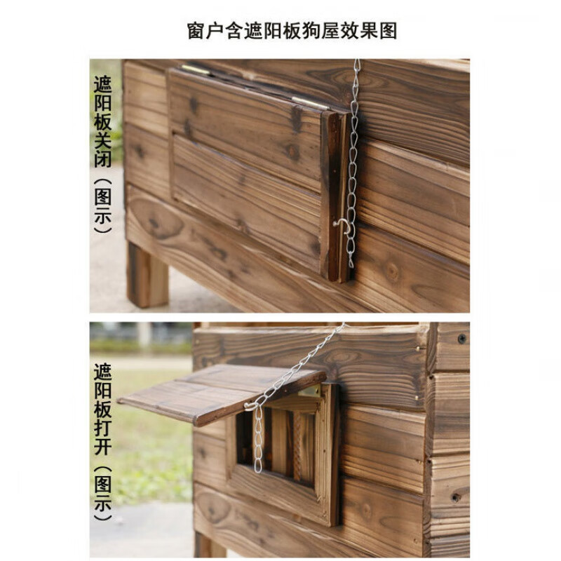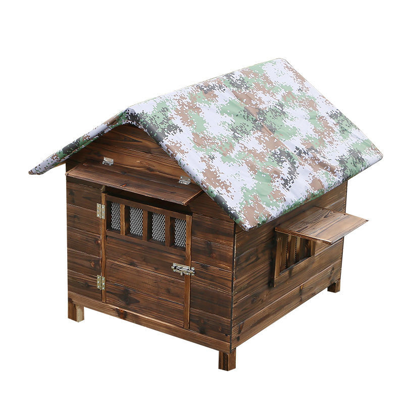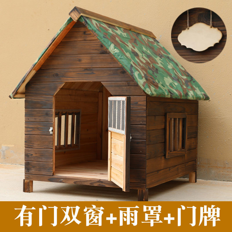 防雨防水室外实木碳化木四季通用狗房子猫房子狗窝猫窝宠物屋狗舍 有门双窗 雨罩 门牌(送厚凉席) S-小型