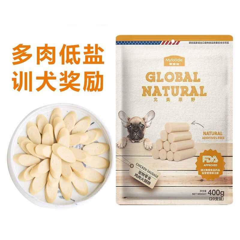 麦富迪狗零食宠物鸡肉干鸭肉干鸡胸肉鸭胸比熊泰迪训练奖励狗零食北美原野 鸡肉火腿肠400g