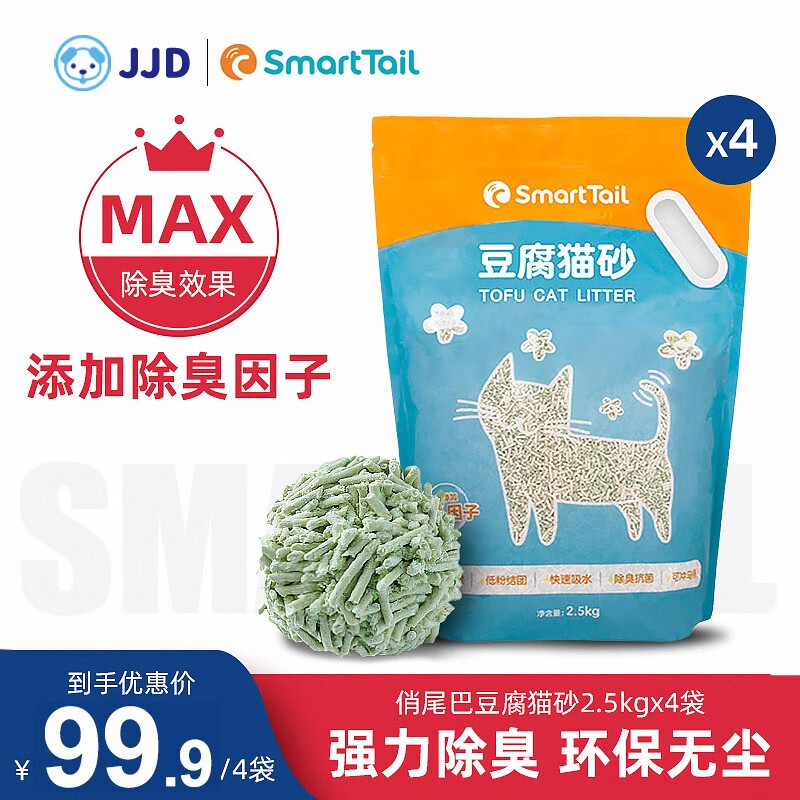 小青鲨小青鲨俏尾巴豆腐猫砂除臭无尘豆腐砂渣猫咪用品猫沙大袋2.5kg5斤 (强烈推荐)绿茶味猫砂10kg
