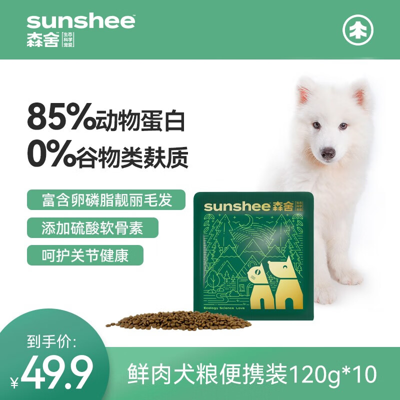 森舍无谷低敏全价鲜肉狗粮2.5kg/袋 全犬种通用 全价粮均衡营养 狗粮便携*10袋【2.4斤】