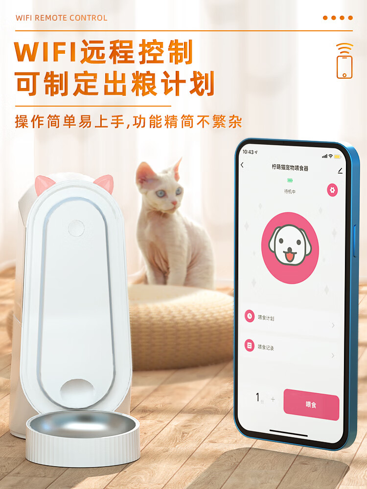 极墨猫咪自动喂食器智能猫碗狗狗投食机自助猫粮投喂定时定量宠物用品 柠萌猫联名智能喂食器(乳白色)