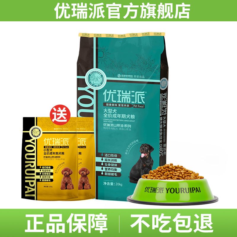 优瑞派狗粮20kg通用型金毛阿拉加拉布拉多大型犬专用粮30斤40斤装 大型犬成犬粮40斤(鎹狗粮2斤)