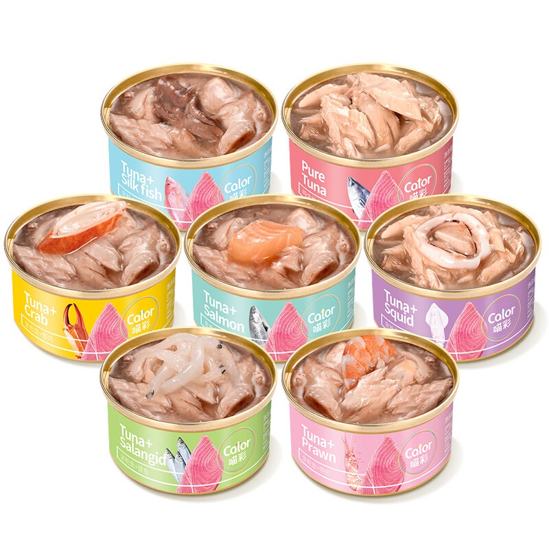 喵彩七日罐金枪鱼猫罐头猫主食罐喵条奶汤罐补充营养零食罐头增肥 金枪鱼七日罐80g*7罐