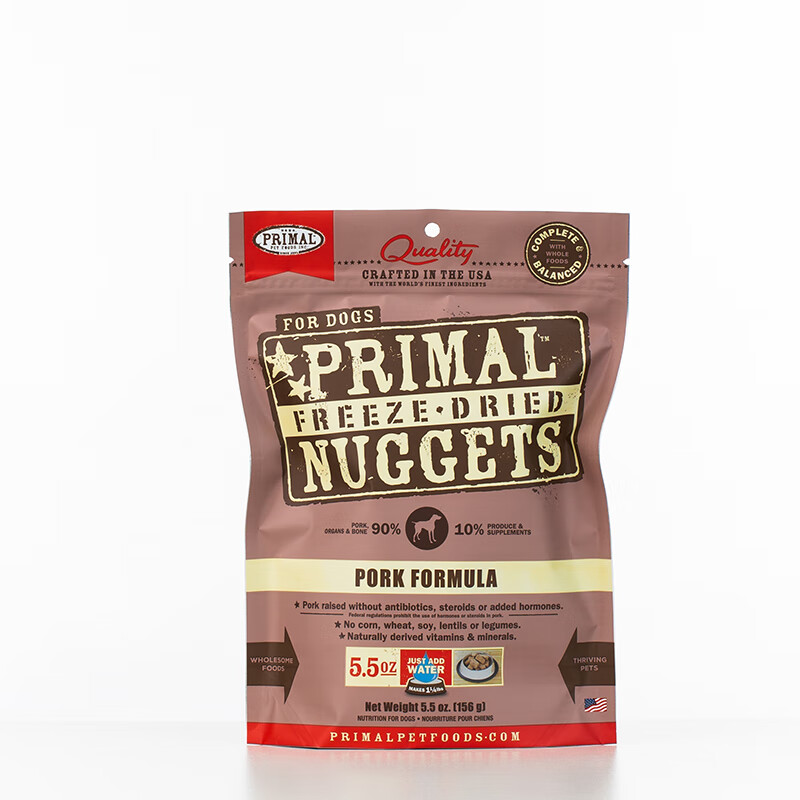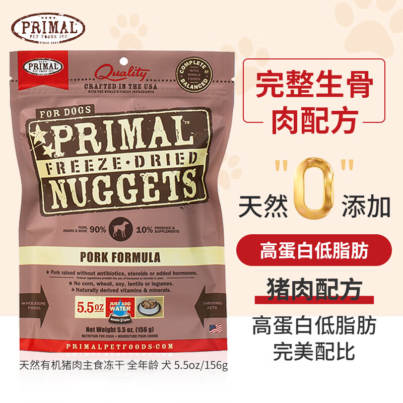 PRIMAL犬冻干主食狗狗生骨肉成幼犬pr全价冻干狗粮有机猪肉主食冻干156g