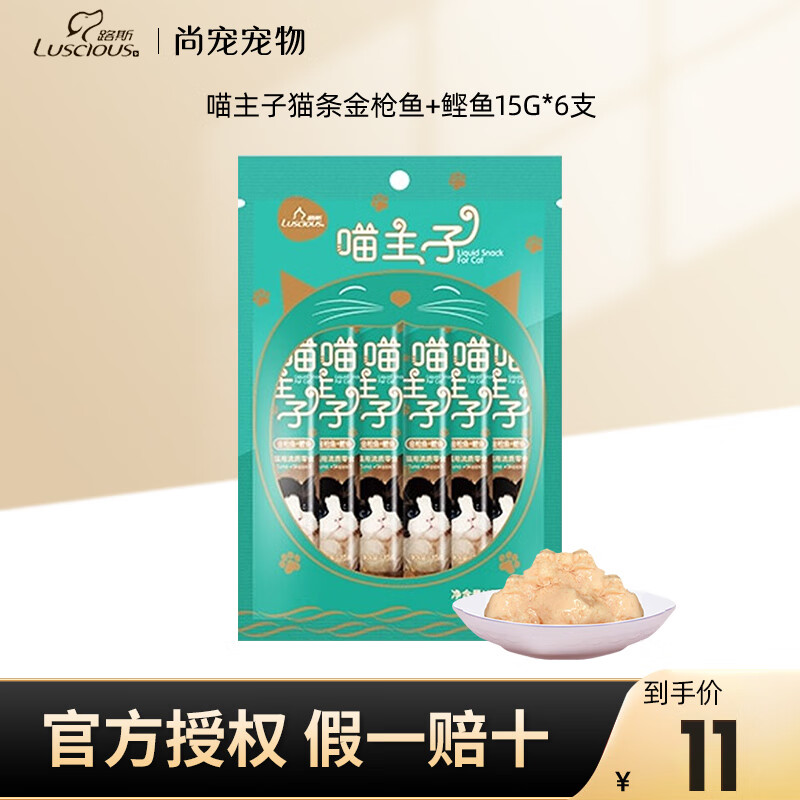 路斯喵主子猫条15g*6支 猫咪冻干肉泥流质湿粮包猫零食幼猫宠物食品 金枪鱼 鲣鱼