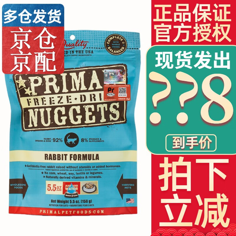 普瑞摩PR冻干猫粮猫主食干粮零食鸡肉鱼肉冻干猫粮生骨肉 兔肉味156g(24年5月起)