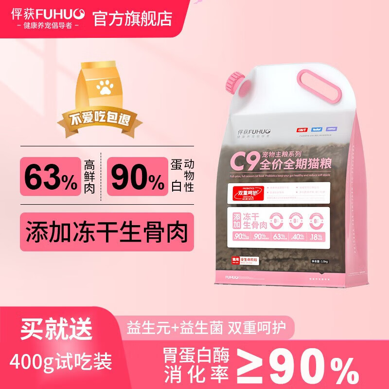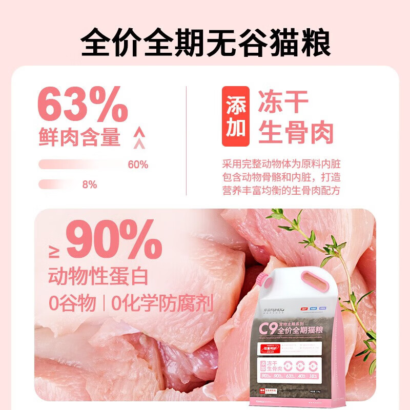 俘获C9生骨肉冻干猫粮可搭高鲜肉猫粮无谷幼猫成猫全阶段主食 1.5kg*6