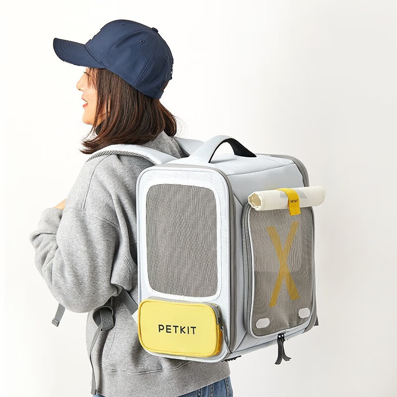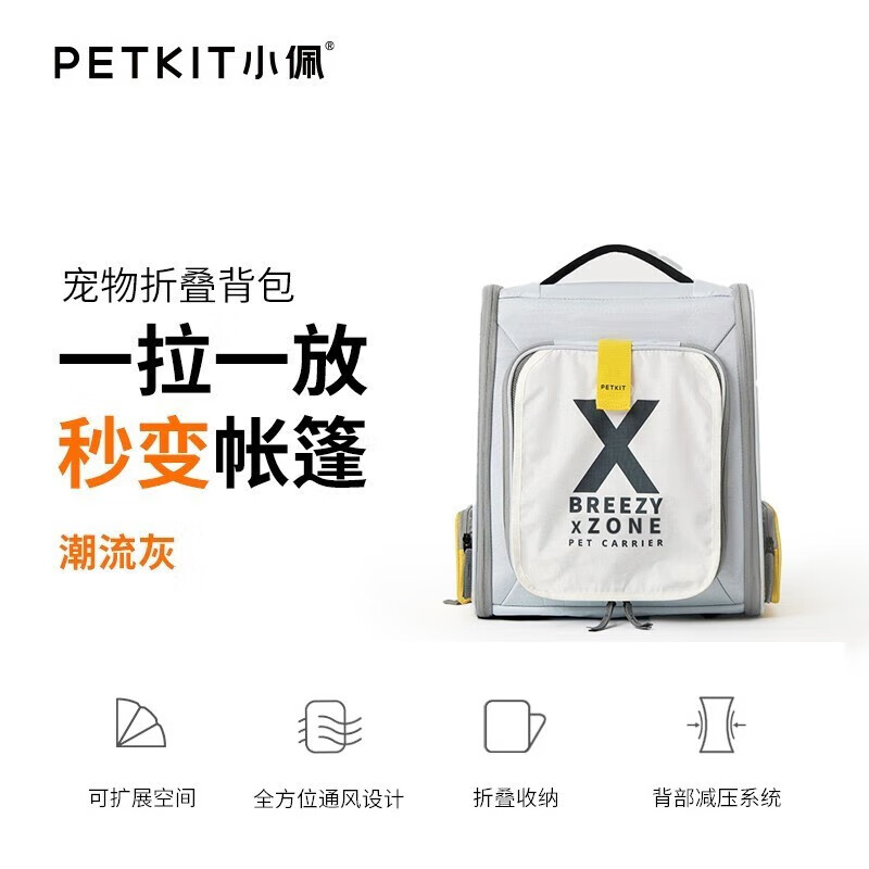小佩猫包 外出宠物背包xZONE双肩大号透气狗包可折叠包便携包航空箱 灰色款