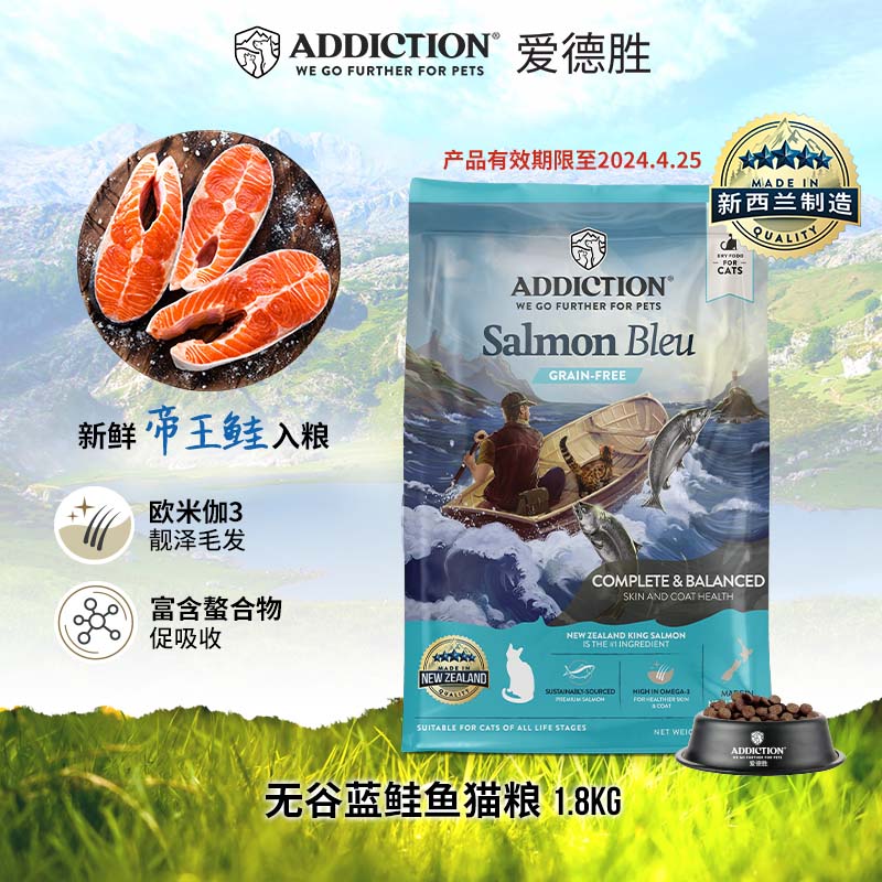 爱德胜ADD新西兰无谷蓝鲑鱼猫粮4.5kg进口猫粮增肥发腮低敏去毛球