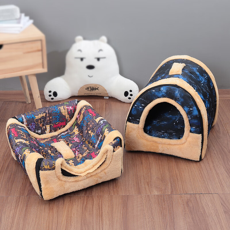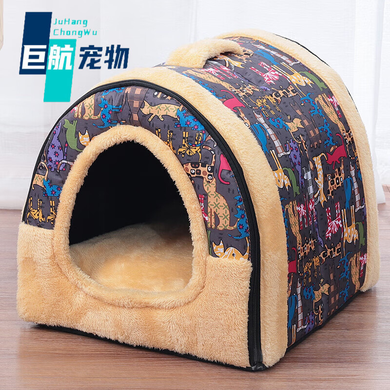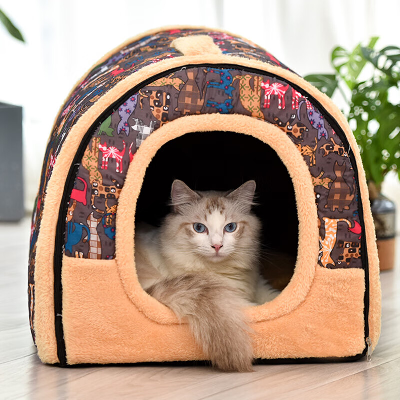 凛东狗窝四季通用封闭式房子宠物别墅可拆洗秋冬保暖泰迪狗屋网红猫窝 动物色小号促销 S-建议5斤内