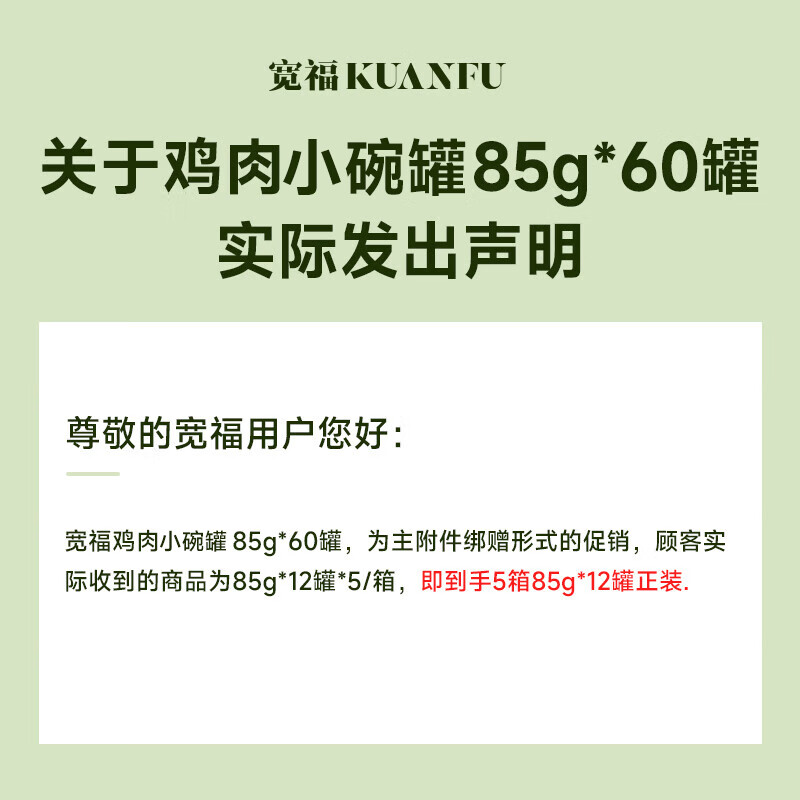 宽福(KUANFU)猫罐头大王预售小碗罐鸡肉味85g*12罐*5【实发60罐(含附件)】