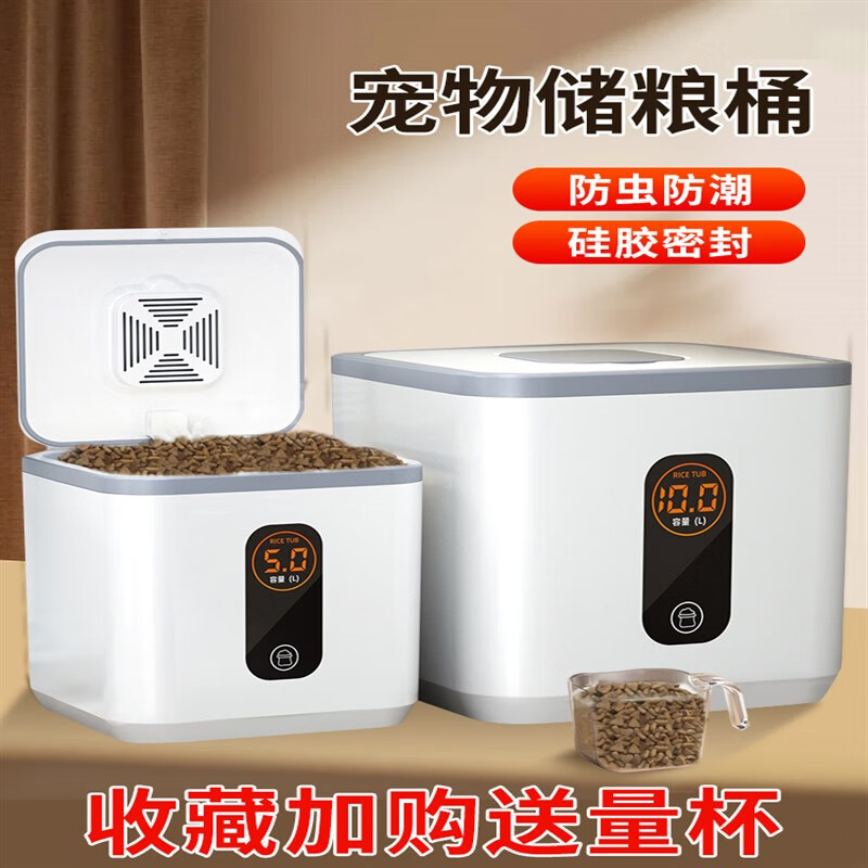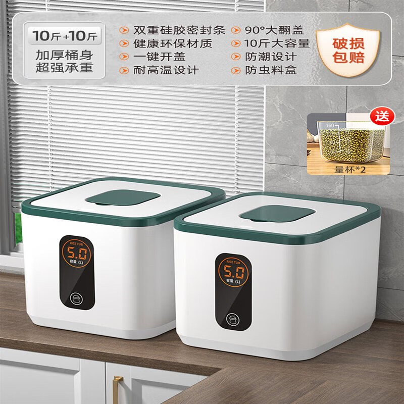 HKML 猫狗储粮罐猫粮储粮桶狗粮密封罐防潮10斤宠物猫咪粮食20斤存储 经典绿 猫狗粮12斤-大米20斤