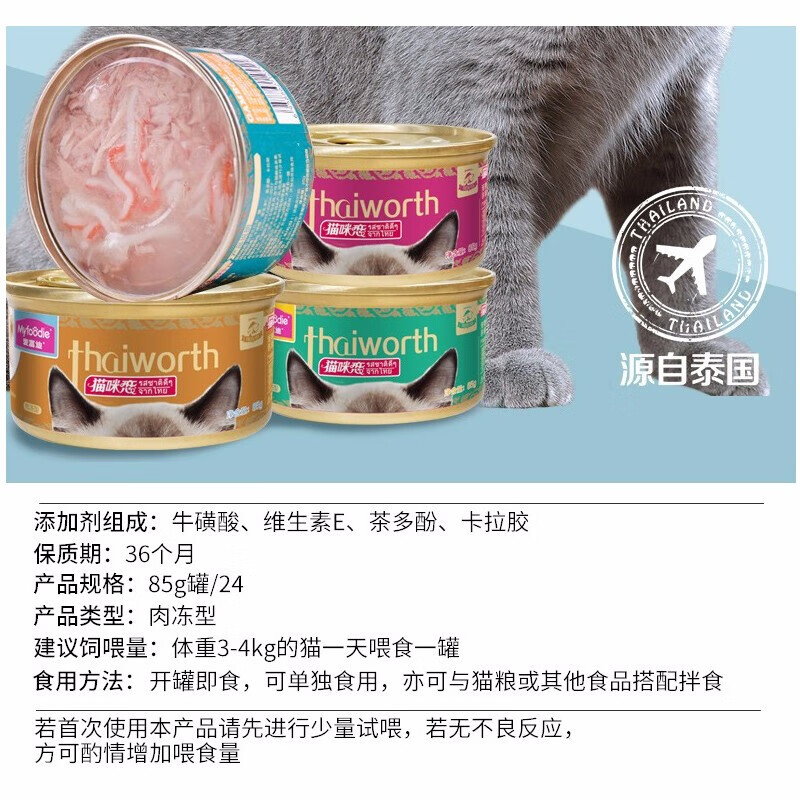 麦富迪(Myfoodie)麦富迪猫咪恋罐头 猫零食成幼猫通用宠物湿粮猫罐头 吞拿鱼 24罐 【肉冻型】