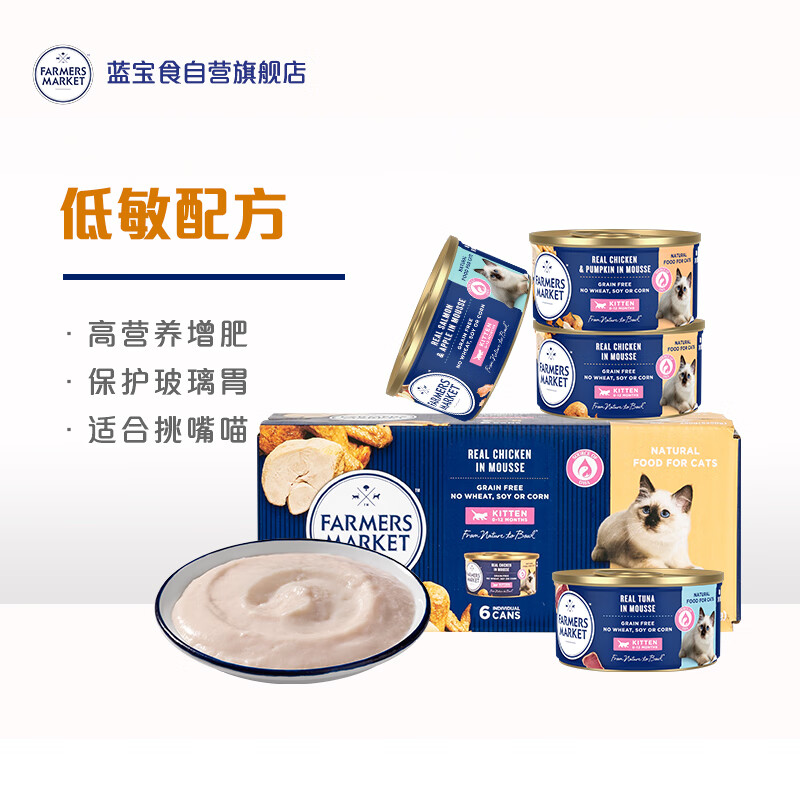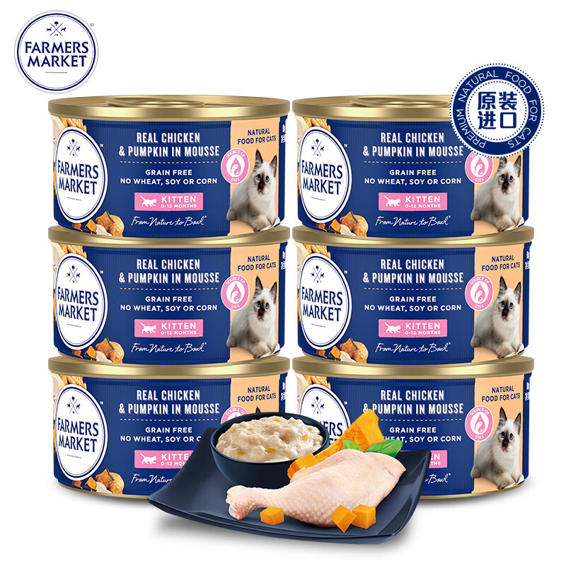 Farmers Market原装进口猫罐头幼猫蓝宝食慕斯鸡肉南瓜80g*6罐装