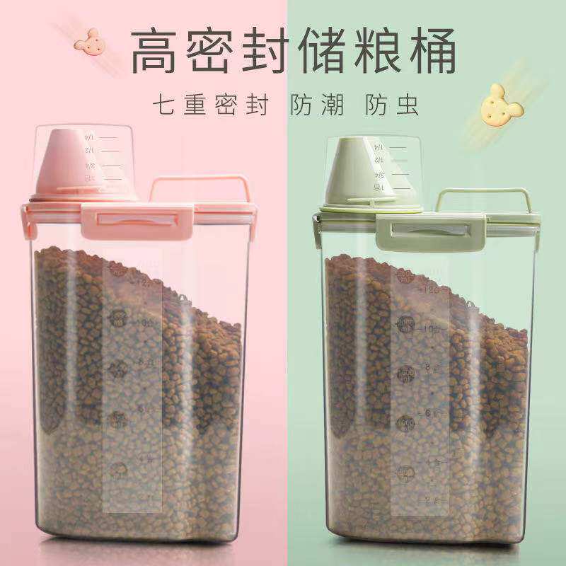宠物储粮桶狗粮猫粮罐头收纳盒防潮防虫密封保鲜半透明PP大容量