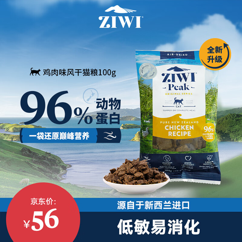 滋益巅峰(ZIWI)无谷风干鸡肉味猫粮100g *1包 布偶加菲英短美短幼猫成猫猫咪主粮