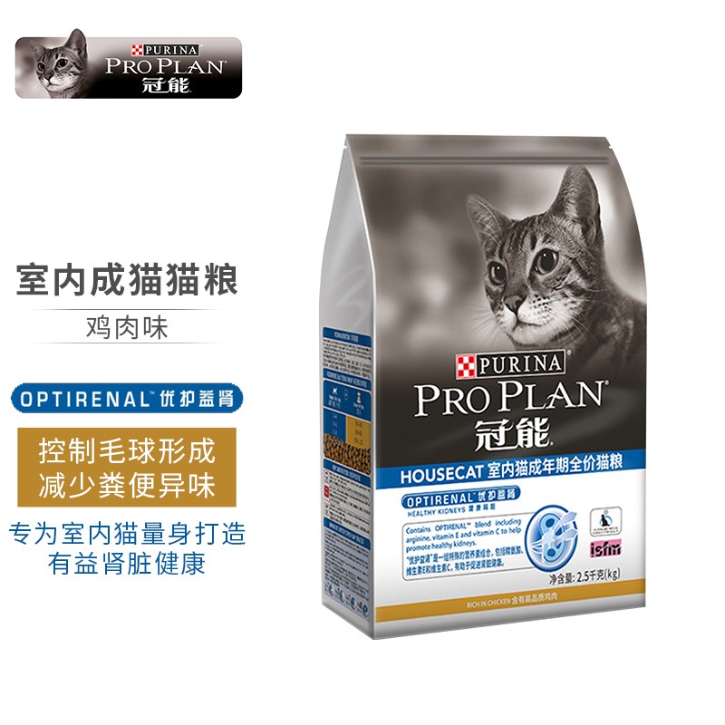 【临期特价】冠能(PRO PLAN)猫粮成猫 室内猫全价猫粮控毛球肥胖超重健肤美毛益肾配方通用 【23年1月7日】室内去毛球成猫2.5kg