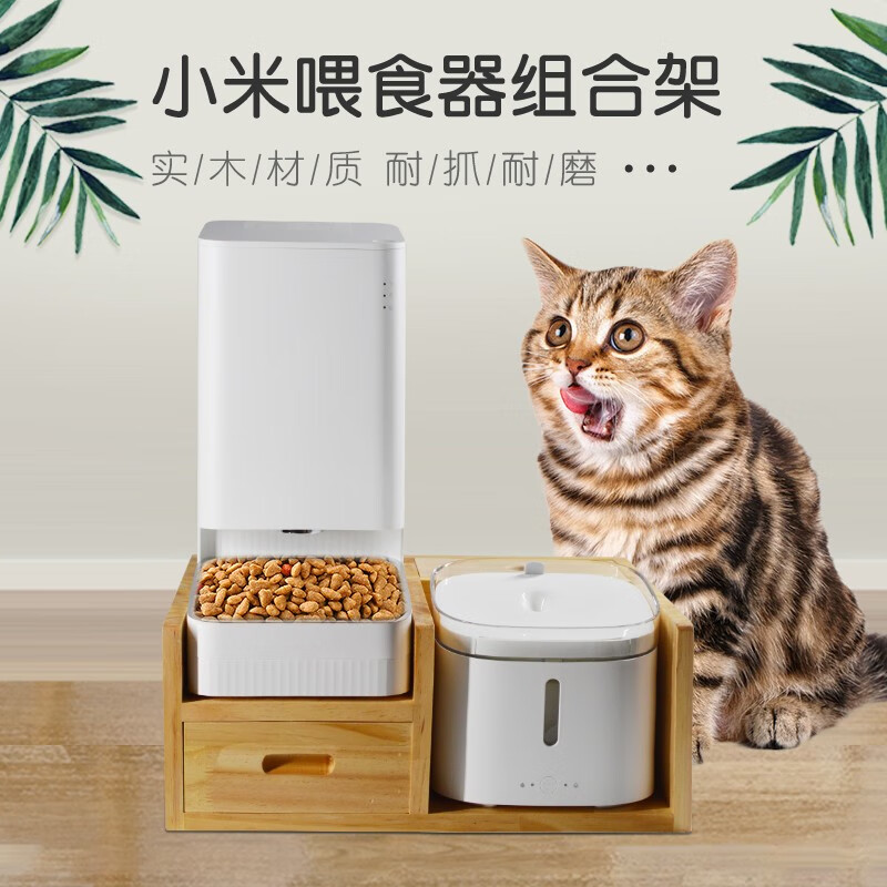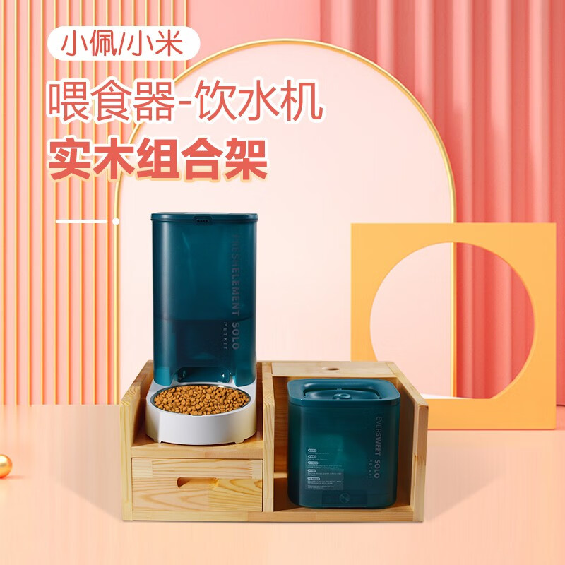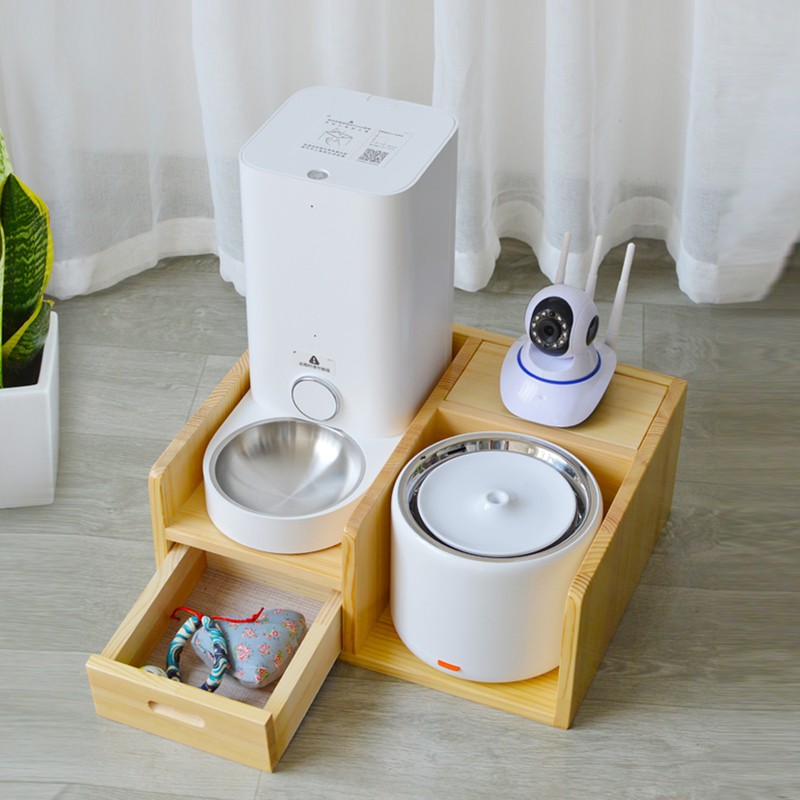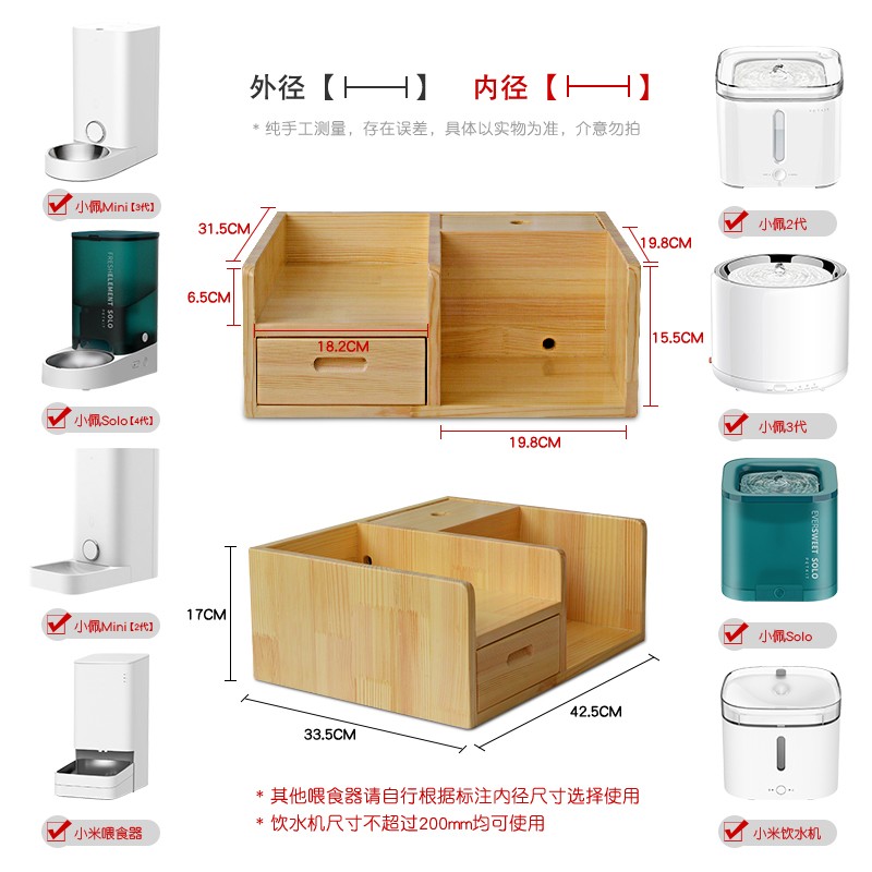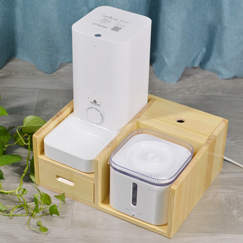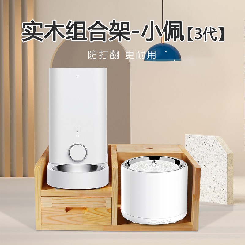 美悦宠物宠物自动喂食器饮水机组合架猫狗碗架实木架增高架餐桌台 喂食器饮水机实木架适小佩小米 M-中型
