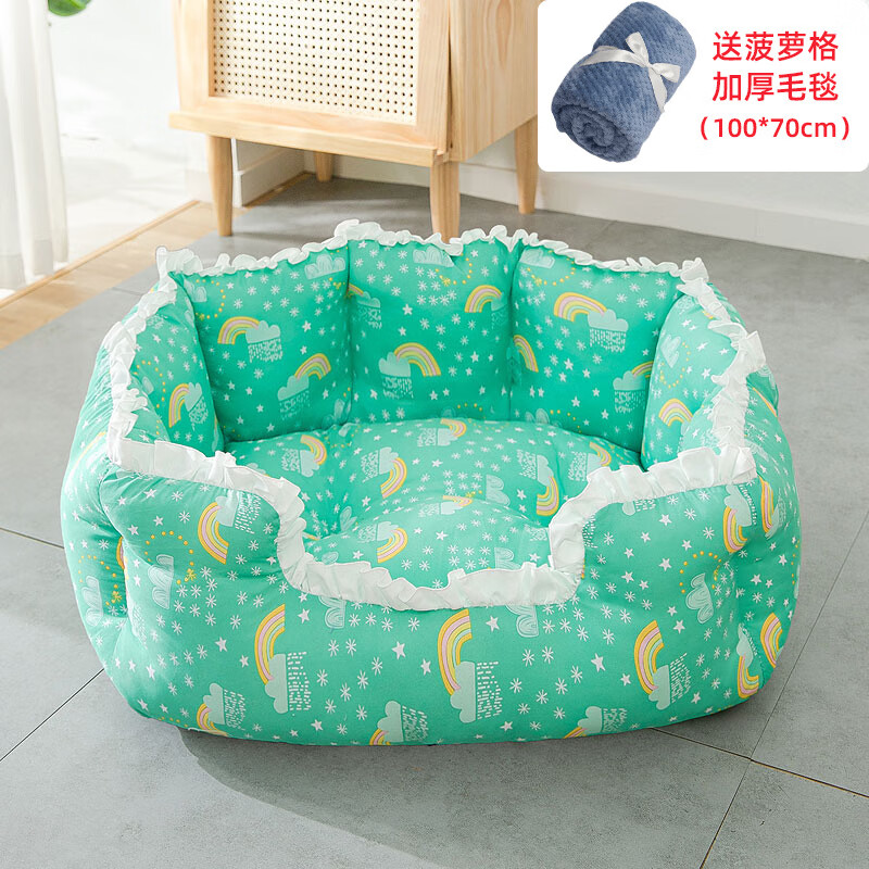 嬉皮狗狗窝四季通用夏天小型犬狗狗床四季通用猫窝非可拆洗泰迪宠物用品 彩虹星星四季(搭配毛毯) 中号-20内(80%用户选择)