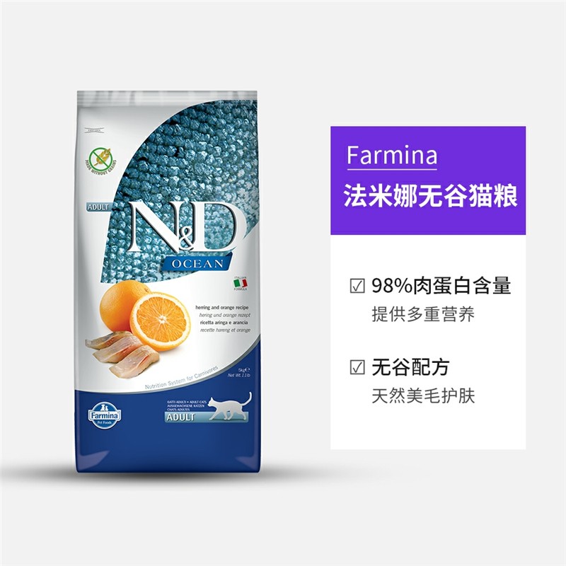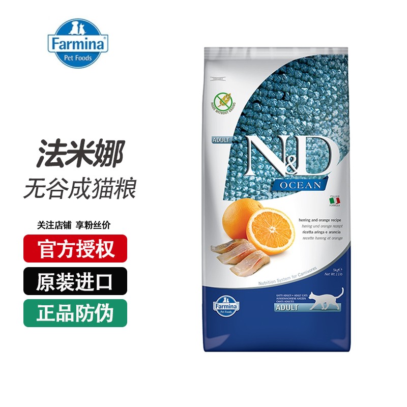 法米娜猫粮成猫粮石榴鸡肉法明娜猪肉苹果鲱鱼甜橙 海洋系列【鲱鱼甜橙】成猫粮5kg