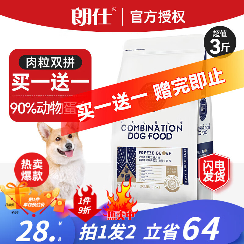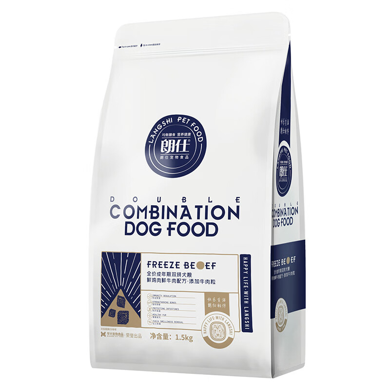 朗仕狗粮鲜肉多拼粮成犬幼犬专用粮全价犬粮 【双拼】鲜牛肉鲜鸡肉配方1.5kg