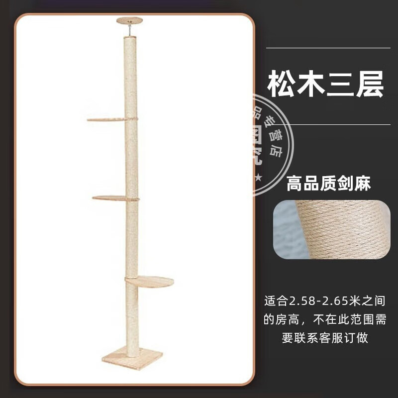 猫爬架通天柱猫爬柱实木剑麻猫树一体大号跳台多层跳台猫玩具用品 松木三层