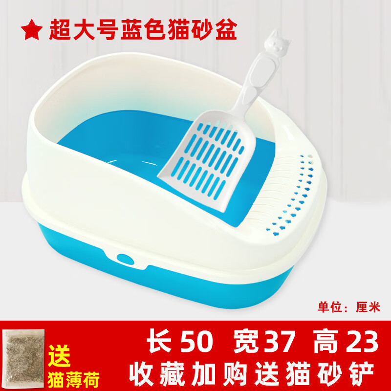猫砂盆防外溅半封闭式猫厕所特大号超大猫沙盆防臭猫屎盆猫咪用品 【蓝色超大号高围栏】收藏下单餸猫铲