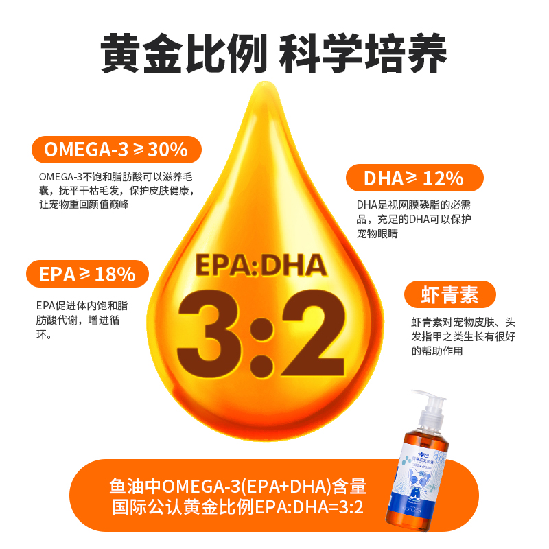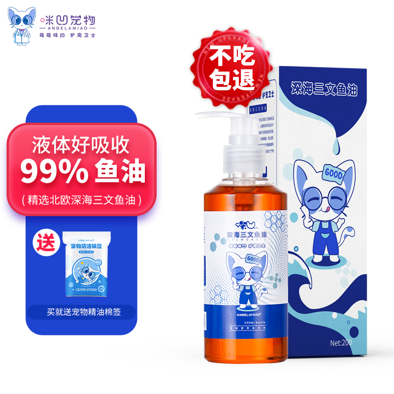 Angelamiao咪凹OMEGA鱼油宠物200ml超浓缩液体鱼油狗狗猫咪美毛亮毛增色防掉毛营养补充剂宠物卵磷脂