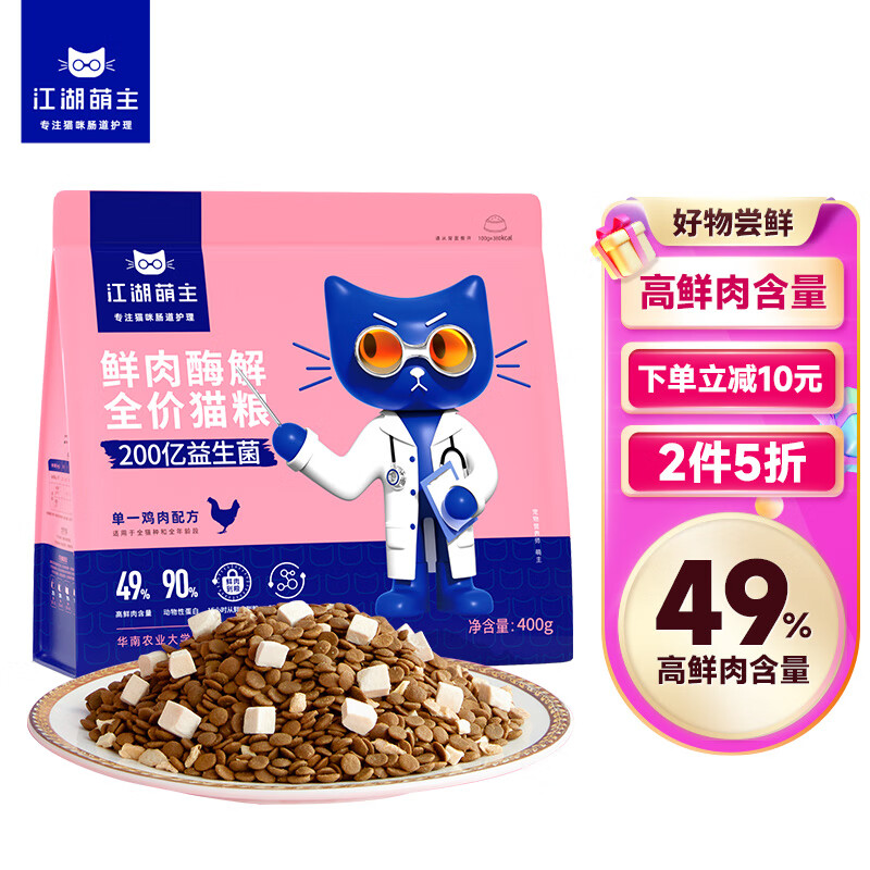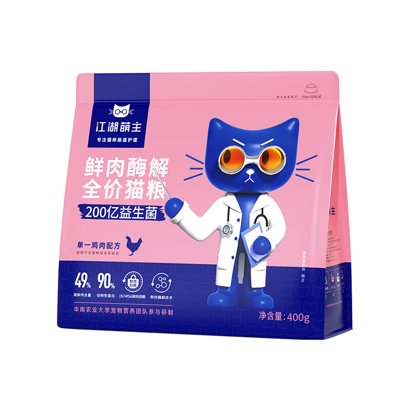 江湖萌主鲜肉酶解全价猫粮单一鸡肉配方400g成猫布偶英短无谷冻干天然粮