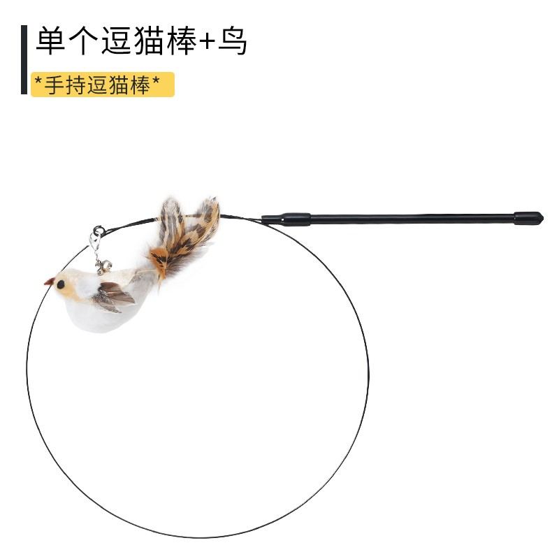 小囧 猫咪逗猫棒自嗨带铃铛吸盘猫玩具套装 手持小鸟款