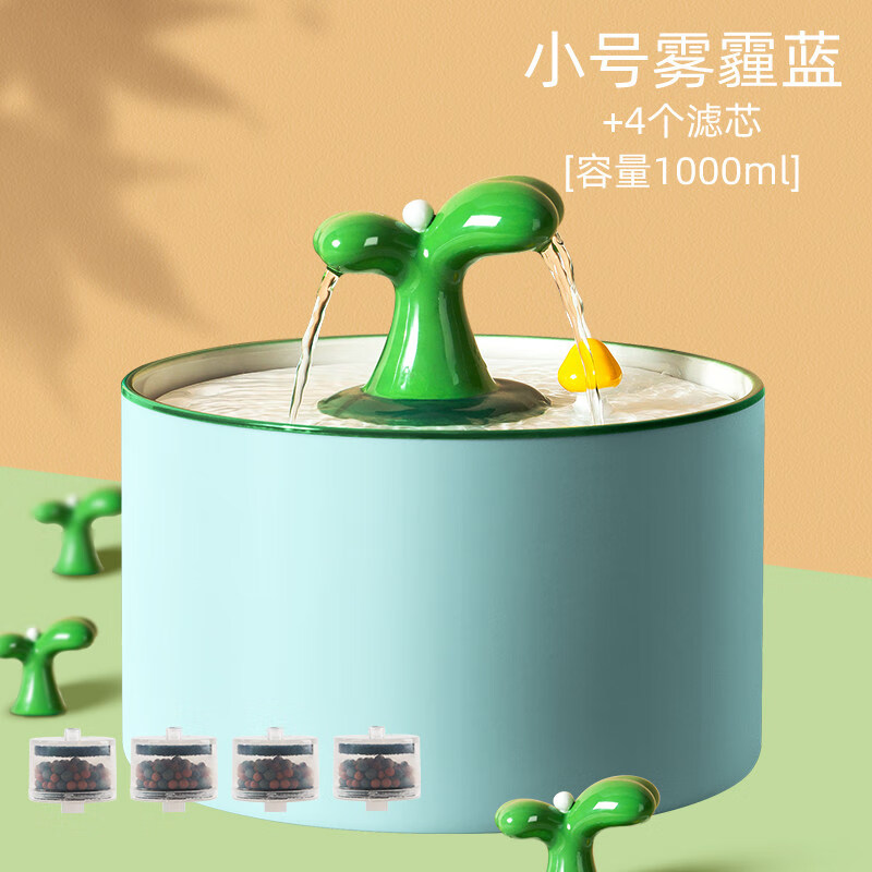 2022新款hoope猫咪饮水机猫咪饮水机流动陶瓷饮水器自动宠物活水喂水碗过滤循环喝水器用品 蓝色1L升级自循环 消菌【4个滤芯装】