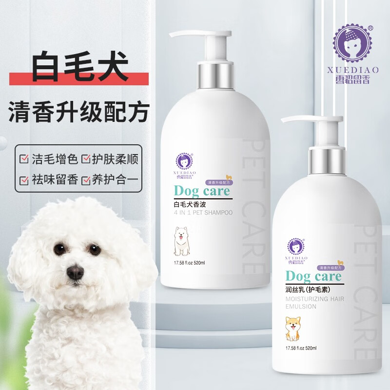 雪貂留香宠物狗狗沐浴露泰迪金毛贵宾博美洗澡液护毛素清香升级款专用香波 【超值】白毛组合