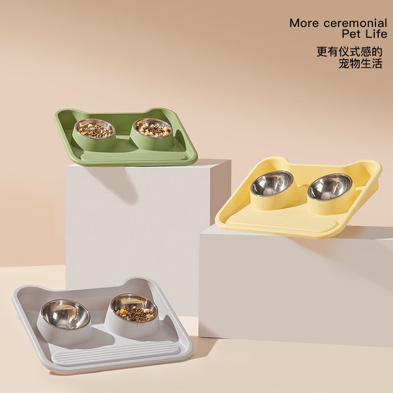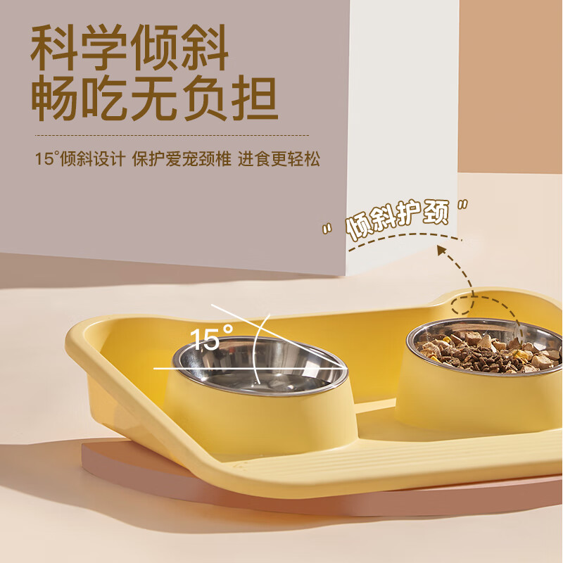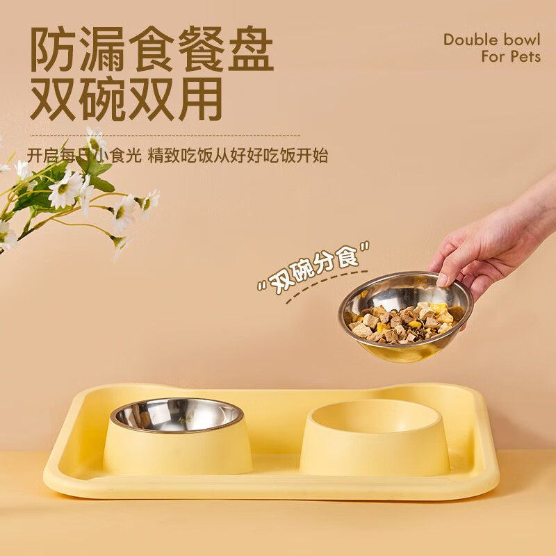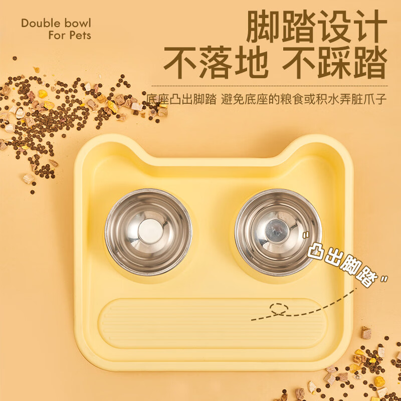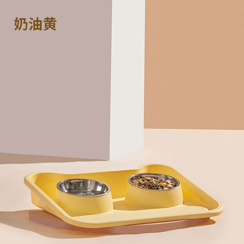 嬉皮狗(hipidog)宠物碗猫脸餐盘防漏食双碗防打翻狗碗小型犬比熊猫碗猫食盆猫咪碗 奶油黄 猫狗通用