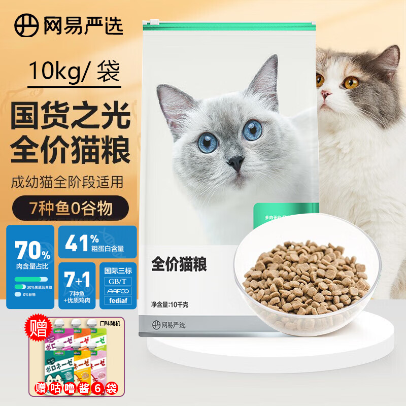 网易严选全价猫粮优选7种鱼 成幼猫宠物主粮猫咪2.0升级版缓解便臭养肠胃 10kg囤货装