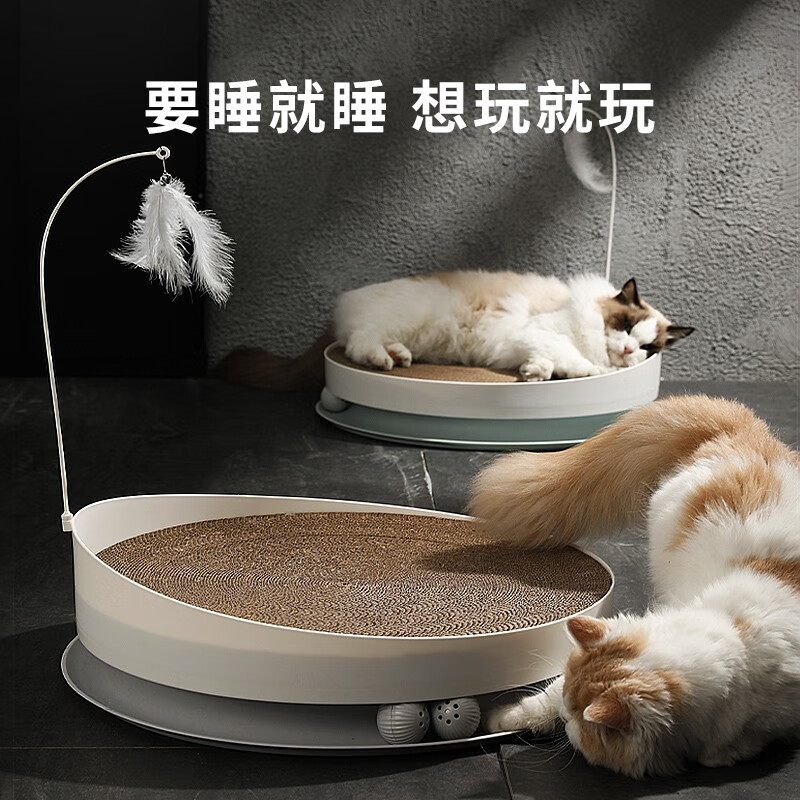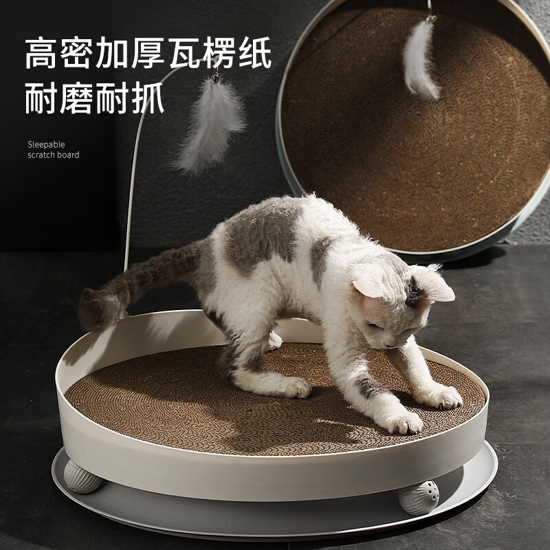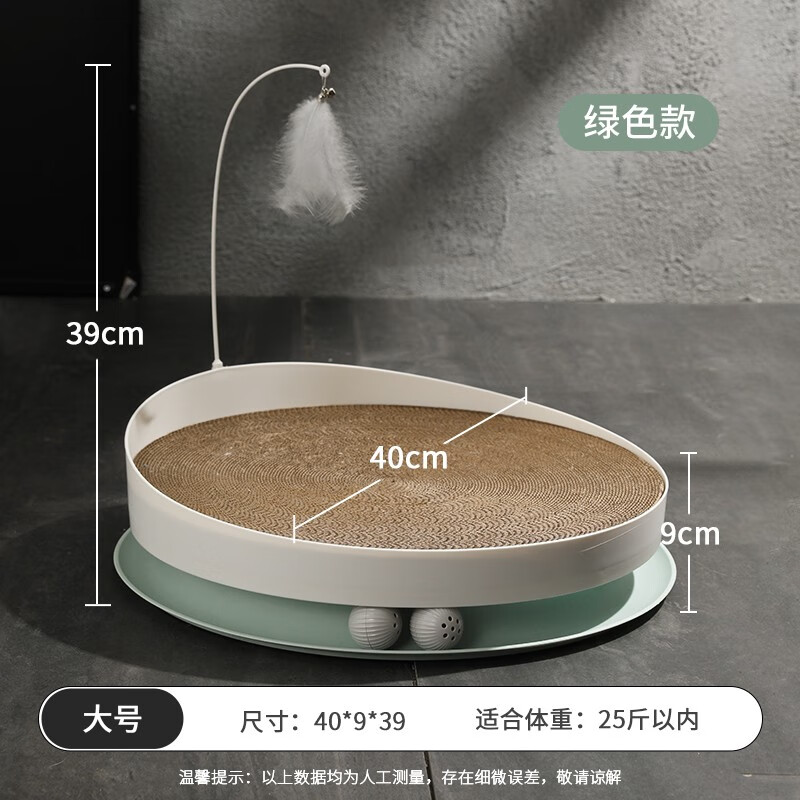 KimPets猫抓板猫窝逗猫一体 圆形耐磨瓦楞纸 不掉屑猫玩具 猫咪用品 猫抓窝 磨爪板 绿色大号