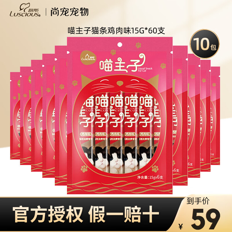 路斯喵主子猫条15g*6支 猫咪冻干肉泥流质湿粮包猫零食幼猫宠物食品 【10包超值装】鸡肉味
